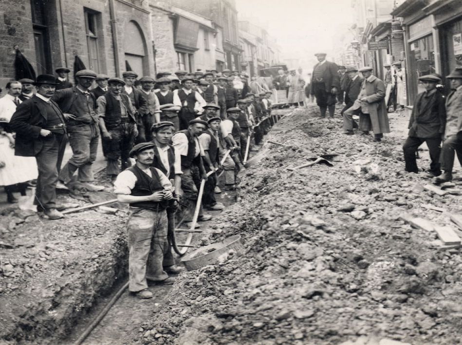 Workmen for the Cornwall Power Supply company laying the first electricity cable in Penzance