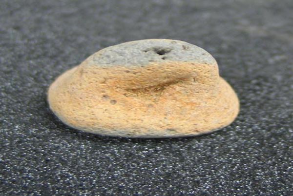 half a cupped, possible macehead, battered at complete end, ground smooth all over.