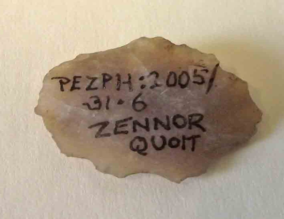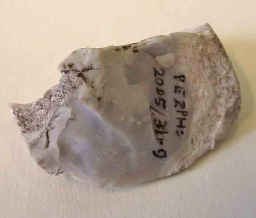 A flint flake that hashad its edges battered.