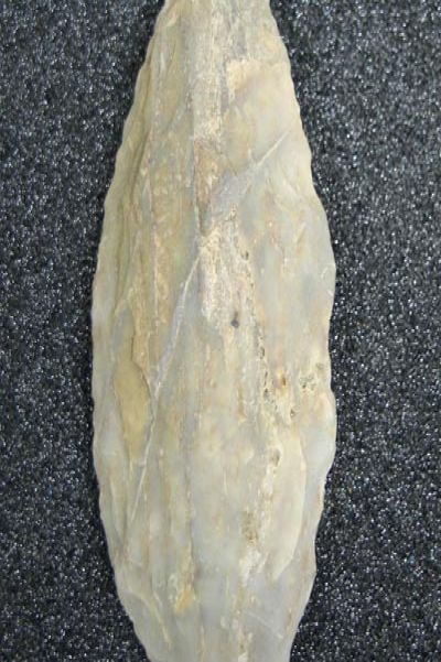 egg shaped hammer stone with battering on one end, the rest smoothed