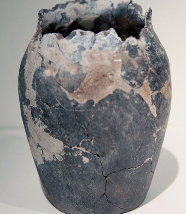 Part of an Iron Age / Romano - British stone bowl with rim and foot, found at Vyneck, near St Buryan.