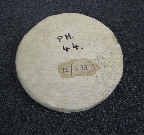 Neolithic or Bronze Age bun-shaped hammer stone with depression worked in the two flat faces. Possibly an unfinished mace head.