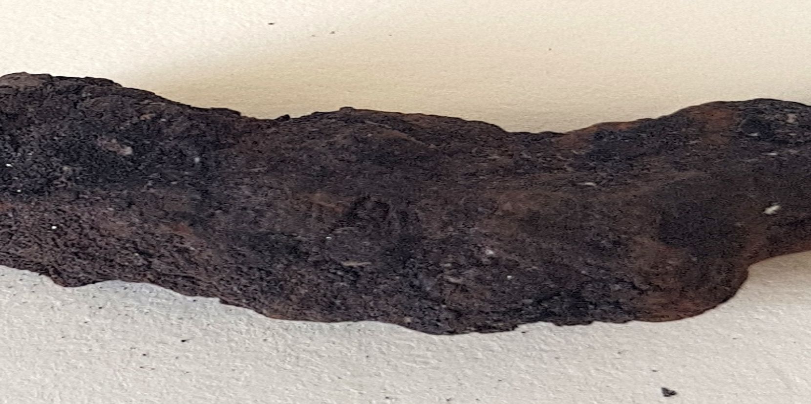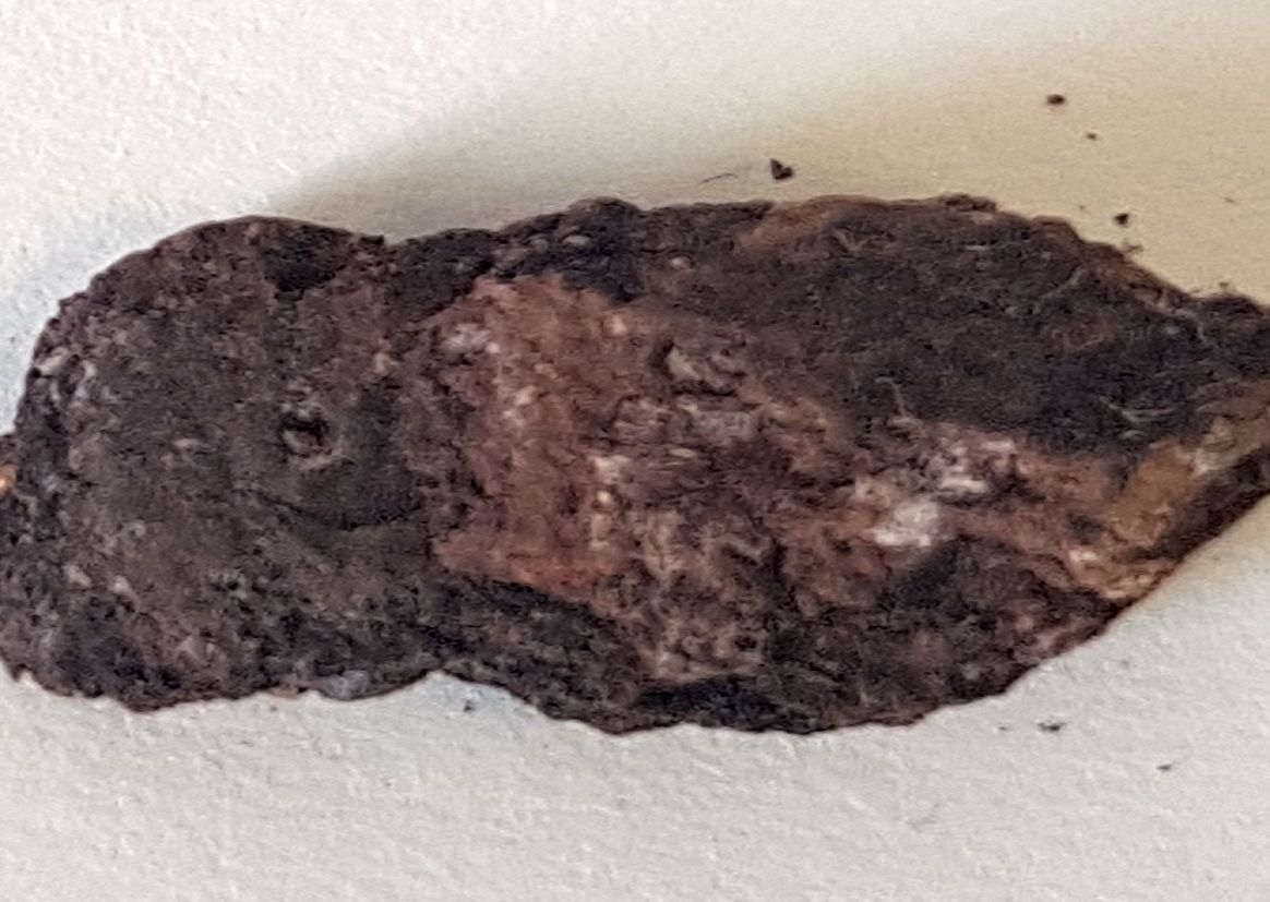 3 small charcoal lumps found in the greyish clay below dark earth layer.
