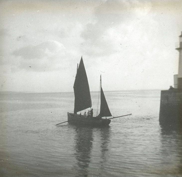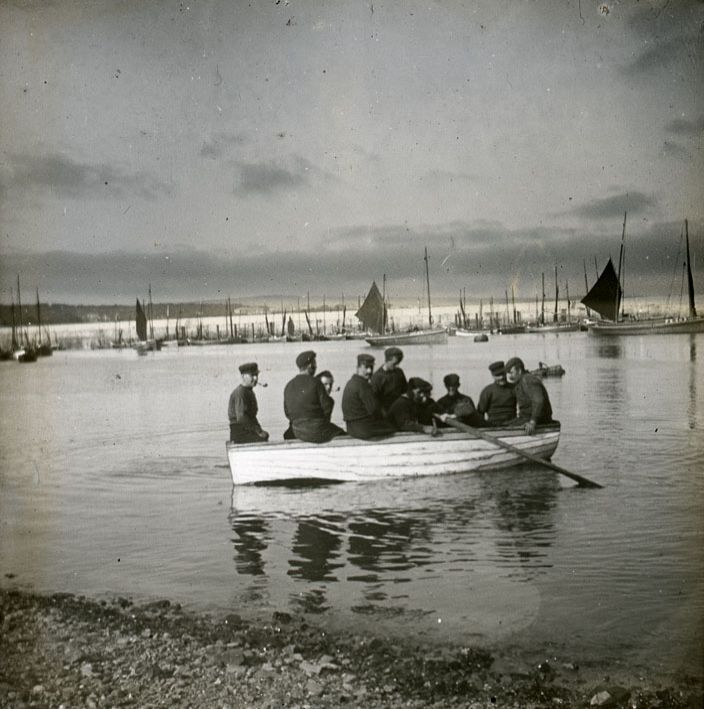 Lugger fishermen being brought ashore at Newlyn in around 1900