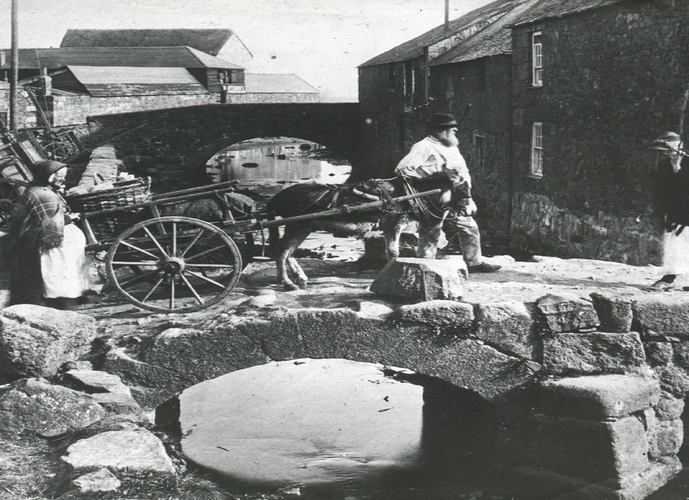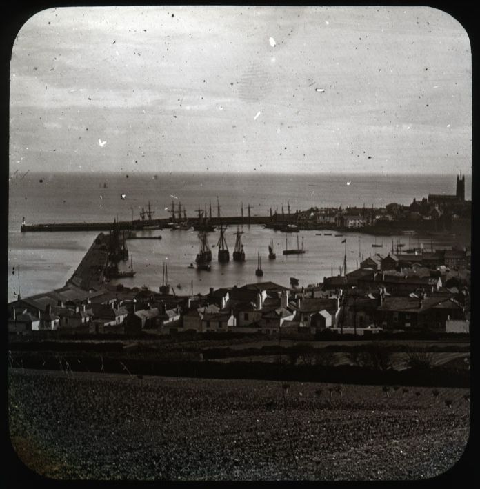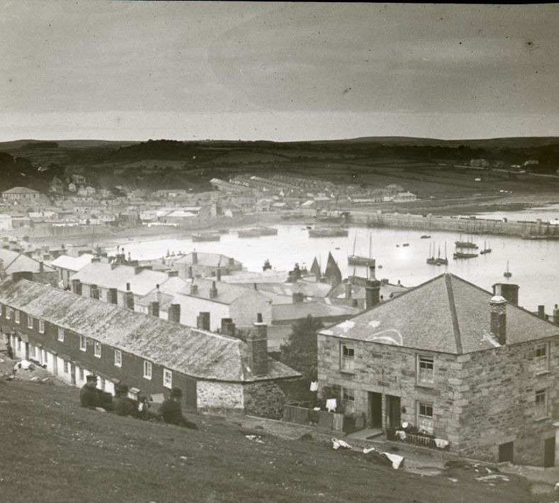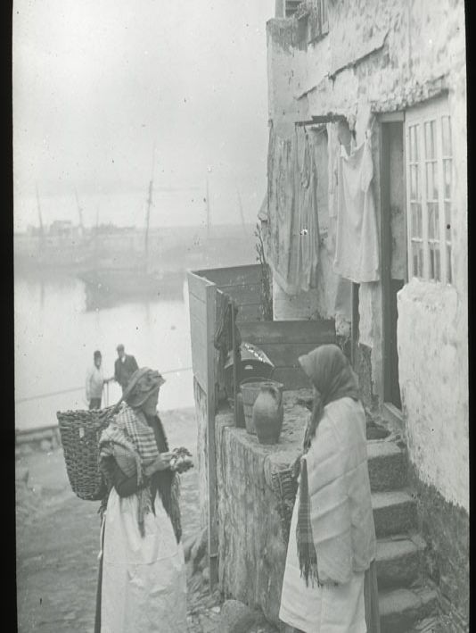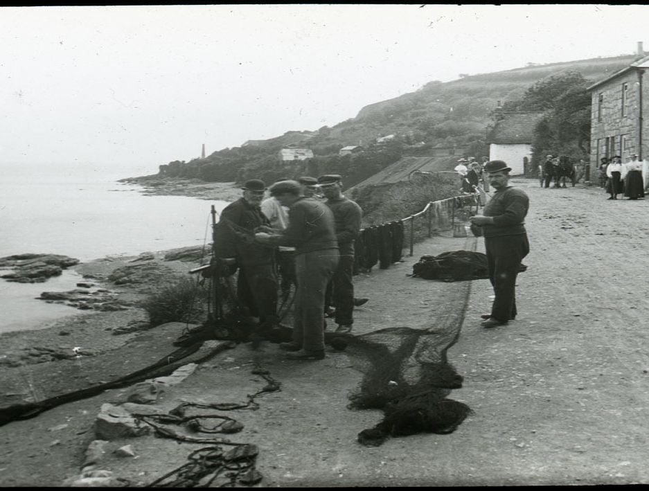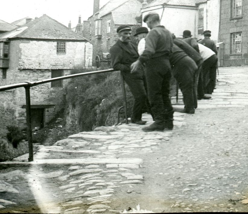 A group of fishermen overlooking the Old Quay, Newlyn Town