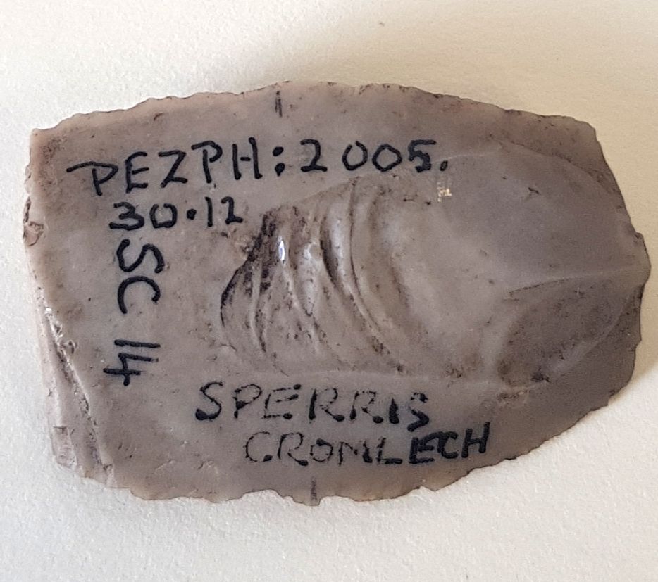 A small flint flake found on the surface of rab.