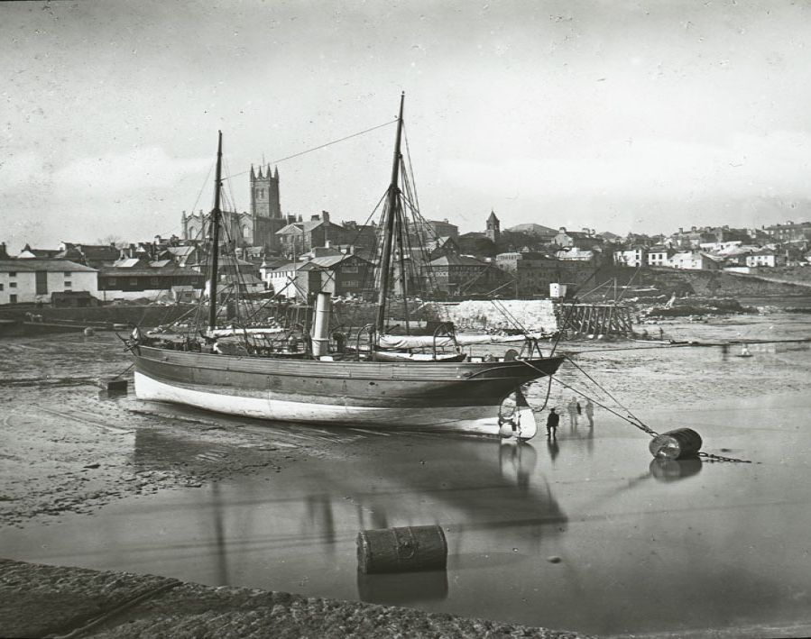 Trinity House steamer dried out at low tide in Penzance