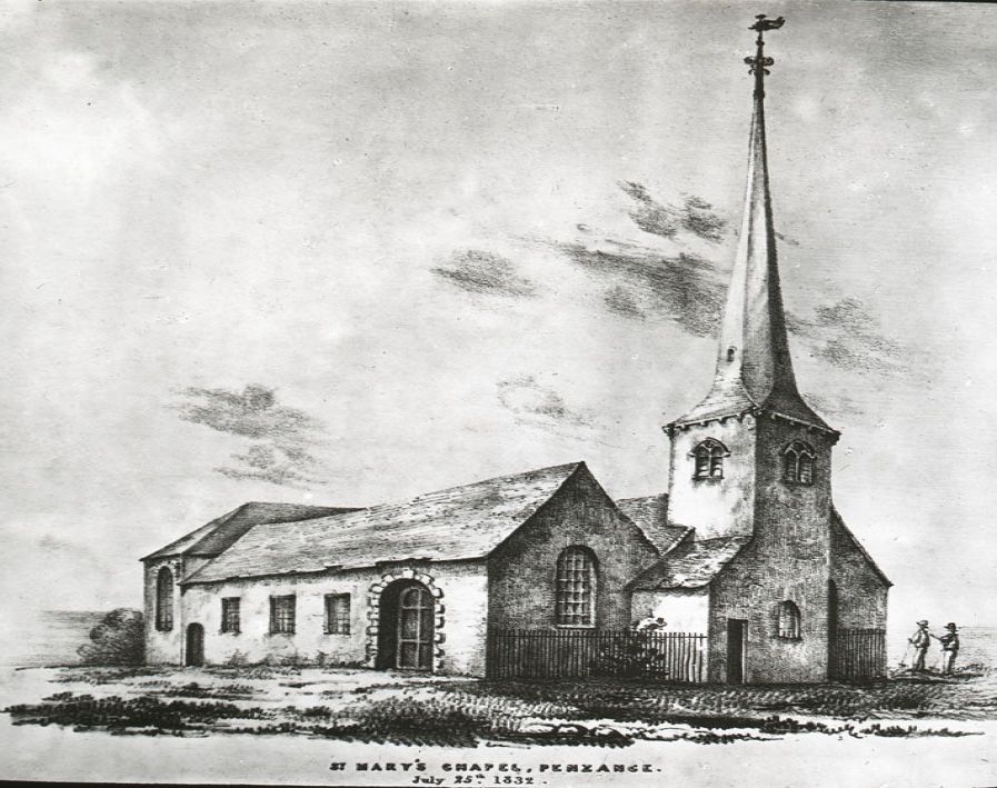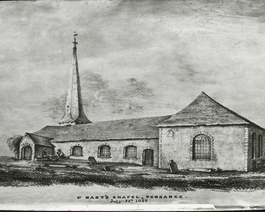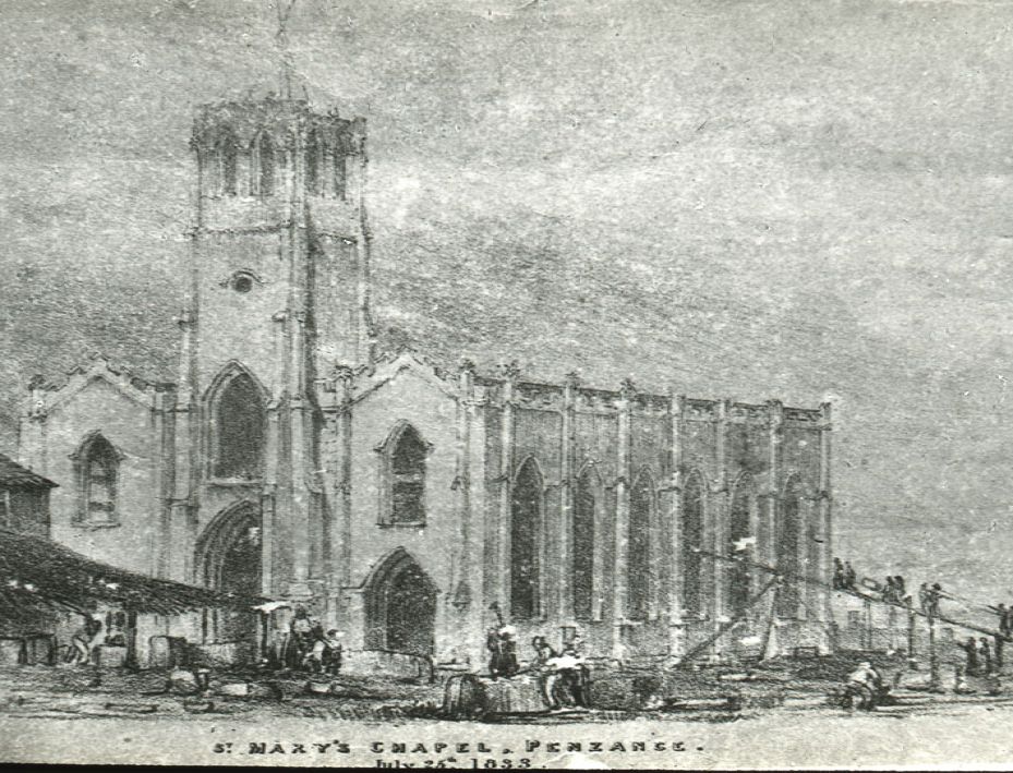 The building of St Mary the Virgin Church, Chapel Street, Penzance in the 1830s