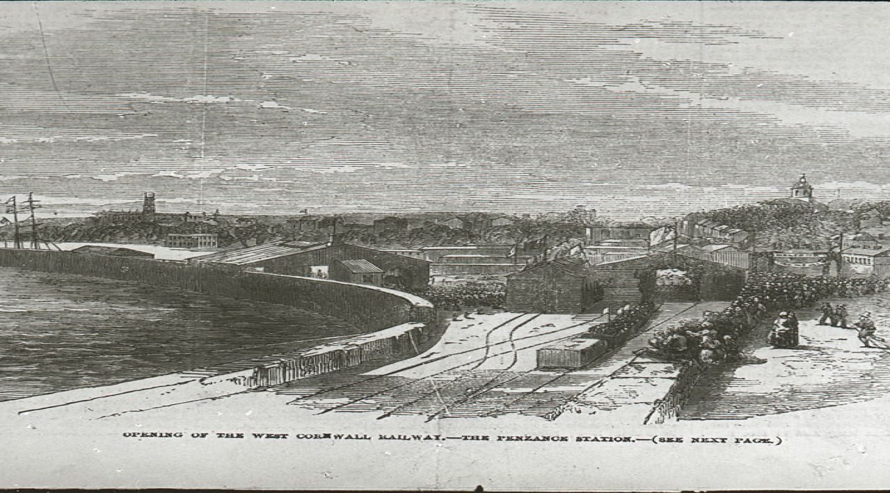 Photograph of a print of the Opening of Penzance Railway Station on 25 August 1852