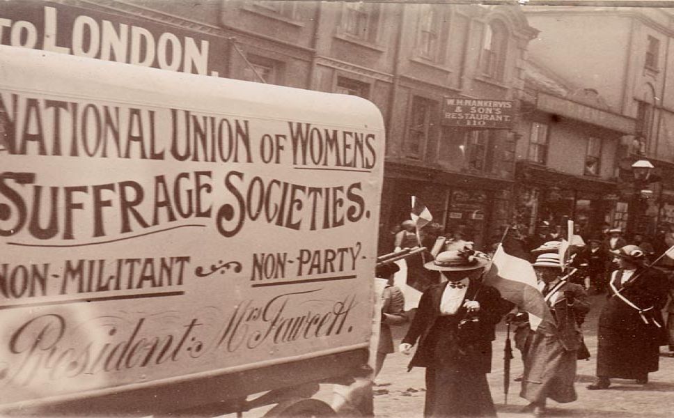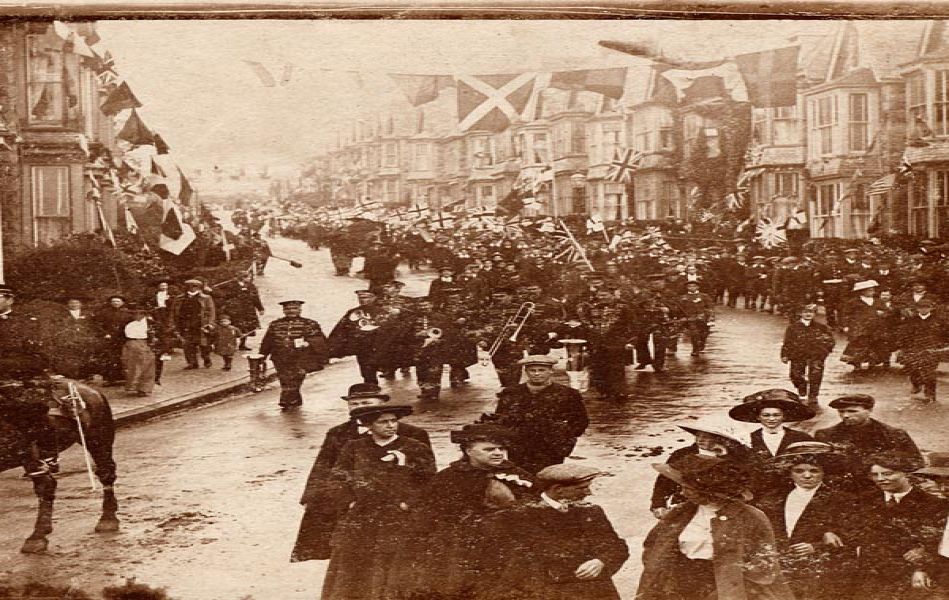 The Suffragettes marching through Penzance in June 1913 on their way to a rally in Hyde Park, London