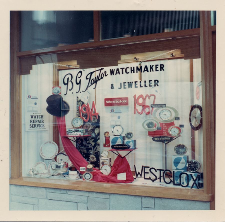 Shop front of B.G. Taylor's Watchmakers in Causewayhead, Penzance.