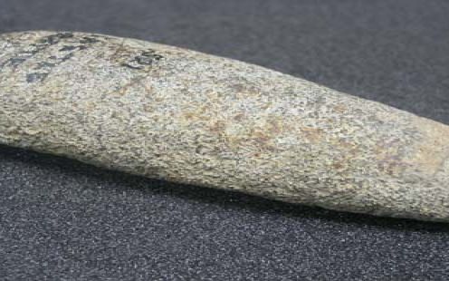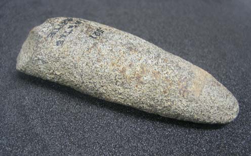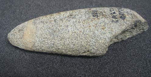 Description: Butt end of possible greenstone adze found at Castle Gate, Ludgvan. Modern equivalent is a mattock.