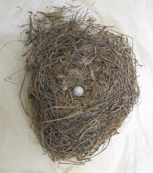 Description: Nest of Linnet containing 1 egg. Collected at Salisbury Plain on 26 April 1912.