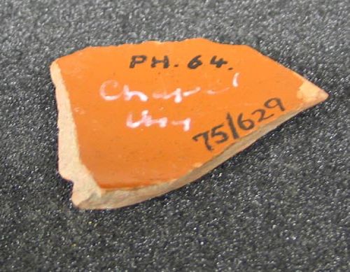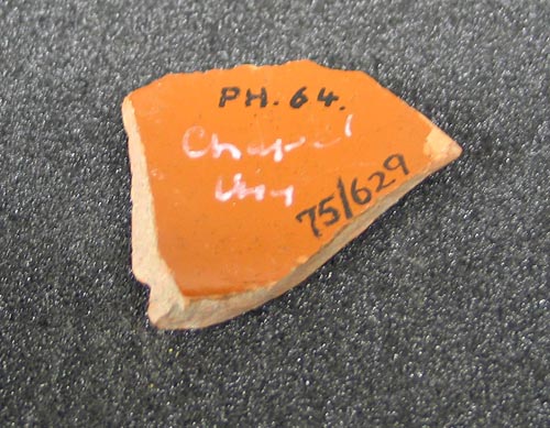 Description: Samian ware sherd rim found at Chapel Uny Cave, Sancreed.