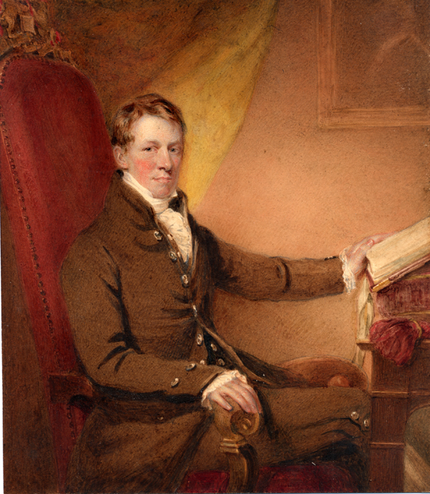 Description: Portrait of Sir Humphry Davy as a young man, sitting at a desk.