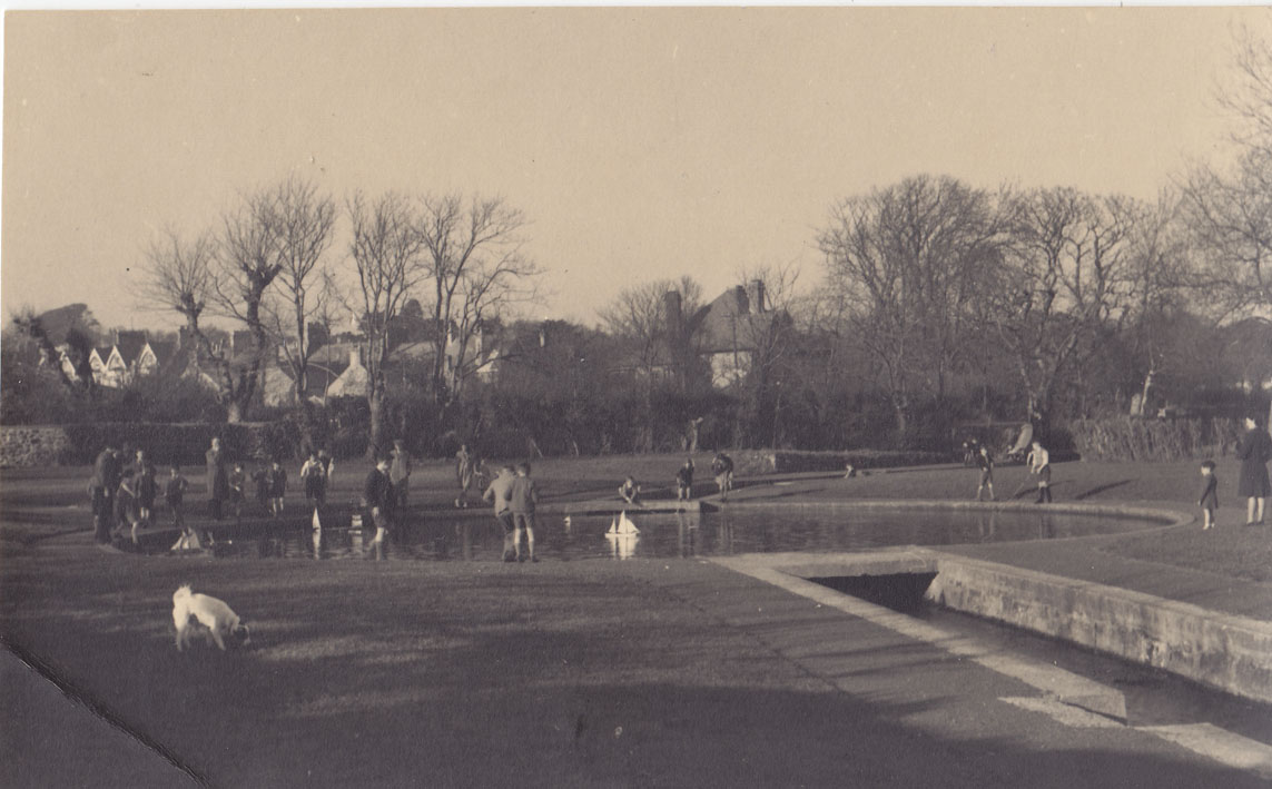 Description: Sailing model boats at the the Rotary Boating Pool, Penzance. The Rotary Boating Pool at Wherrytown comprises two pools connected by a stream from Madron. It was opened on 5 August 1955 by the Mayor, Alderman Miss Agatha Chirgwin. In 2015 it is still a popular venue for model boat operators.