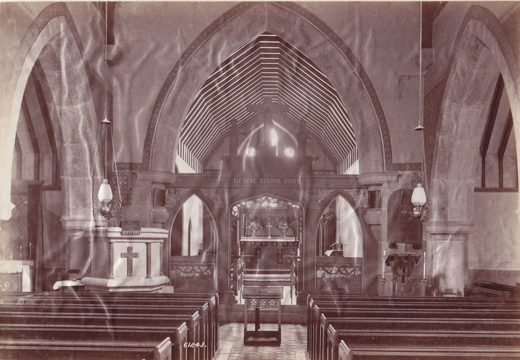Description: St Peter's Church in Newlyn was built in 1866 before which time Newlyn was part of Paul parish. The foundation stone was laid on St Peter’s Day 1864. The first service was held on Tuesday 6 February 1866. At that time the nave and south aisle were built with the north aisle to the right of the picture 1990.1344 being added in 1886. Since the 1990s the church has been opened up further with the removal of the old Victorian pews and the west end and the choir stalls from the chancel.