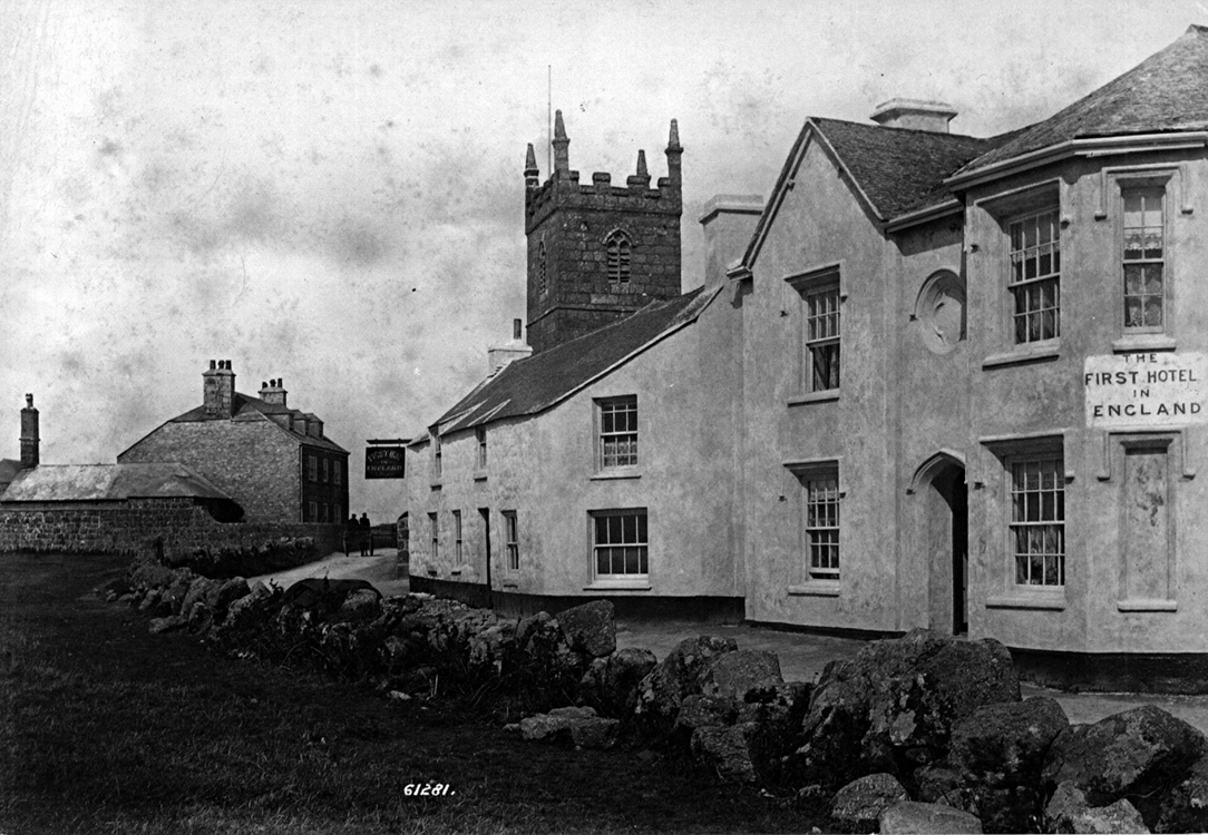 Description: The First and Last Inn and First Hotel in England at Sennen Churchtown or Treeve. The inn was built originally to house the masons who were building the church. In parts, the inn dates back to the 15th century. Much of the present church was standing by 1430.