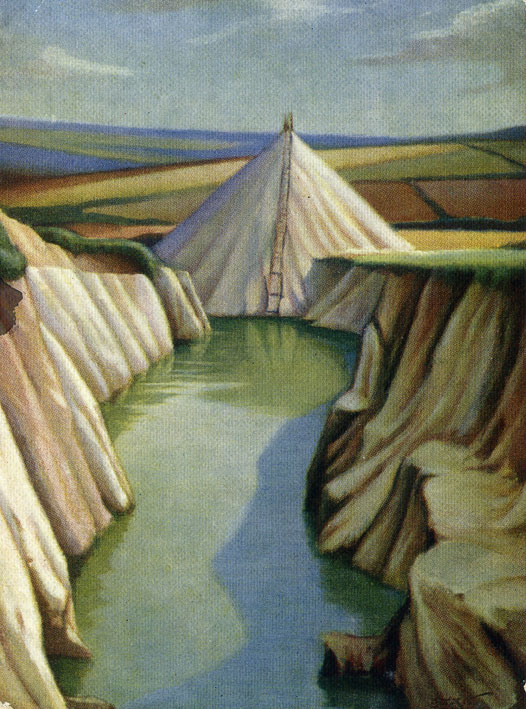 Description: This is a reproduction onto postcard of Herbert Truman's view of disused industrial clay pit at Amalebrea,Towednack. Truman was member of the St.Ives School pre WW2; part of his output were images such as this of Cornish industrial landscapes which were then issued as postcards