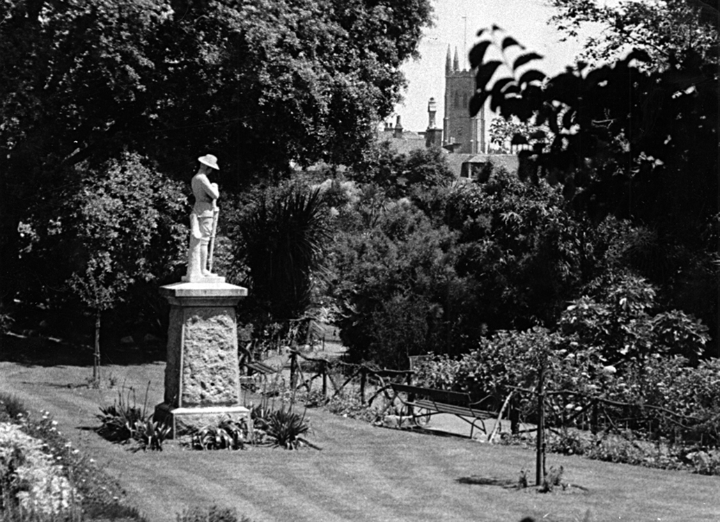 Item: The Boer War Statue in Morrab Gardens with the tower of St Mary's Church in the background