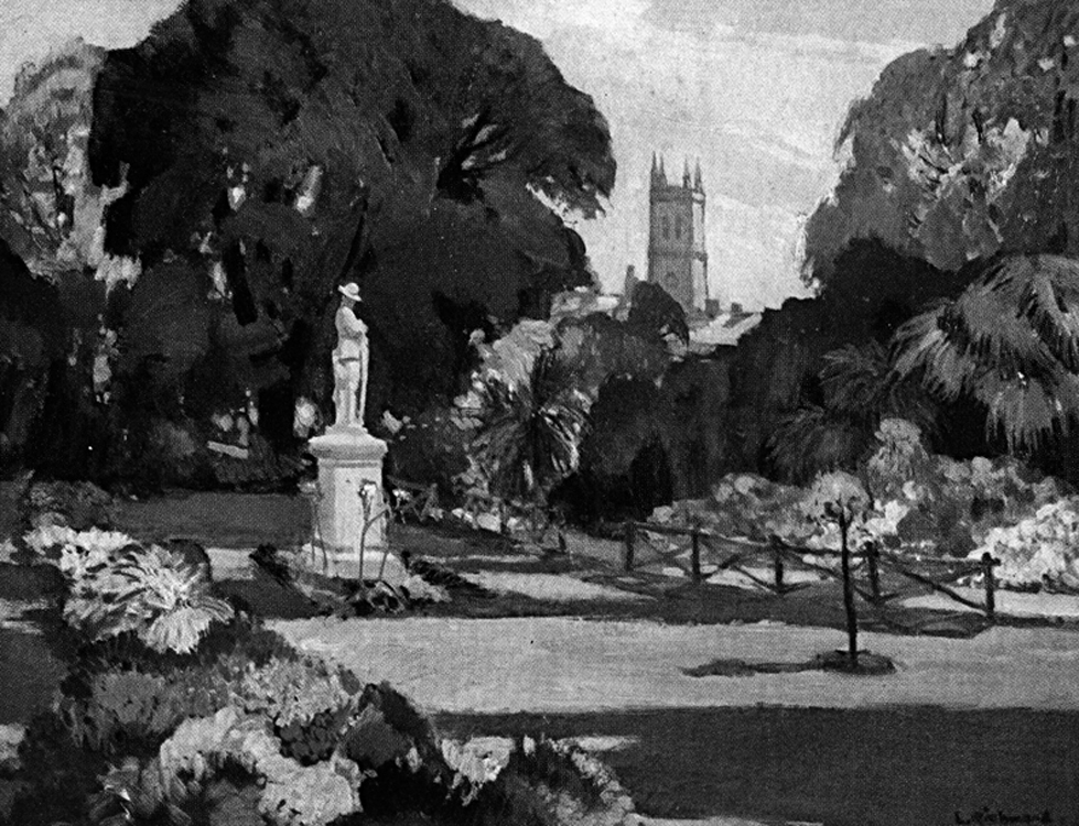 Item: Painting by Leonard Richmond of the Boer War Memorial in Morrab Gardens,Penzance