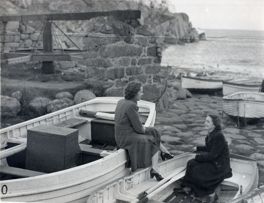 Description: This small fishing cove at Penberth is now owned largely by the National Trust. Due to its rocky nature, it is a skilful job to launch a boat here. The first capstan to facilitate landing the boats was built by Lord St Levan in 1790. The slipway is of granite. The late 20th century saw it being used mainly for lobster and crab fishing. This photograph may well have been taken for the local tourist guide.