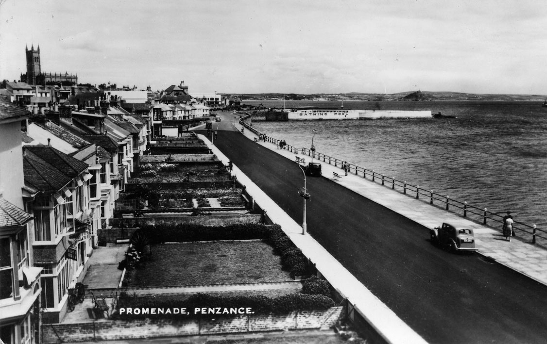 Description: Possibly this was taken by Photoair which outfit took photographs for the military in WWll. This photo shows Penzance harbour front, Jubilee Pool, harbour and Long Rock beach to about a sixth of a mile inland. The houses in the bottom left of the picture were demolished following the Ash Wednesday storms of 1962.