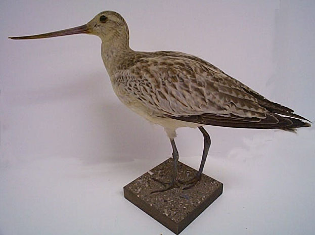 Description: Bar-tailed godwit, mounted by Rowland Ward Ltd, London. Shot at Eastern Green by A W H Harvey on 14 September 1914.