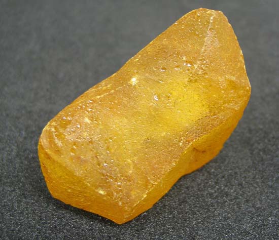 Description: Crystallised amber coloured gum in crystalline shape containing irregular flecks. Collected from the Kawin Forest, Auckland, New Zealand.