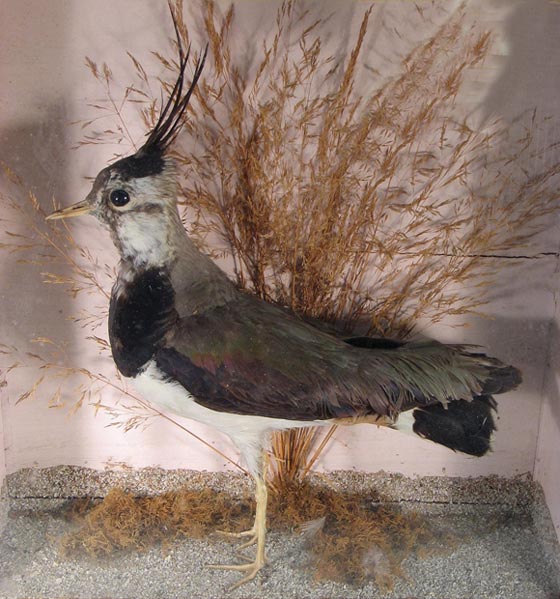 Description: Lapwing in a case, mounted by E Vingoe of Penzance.