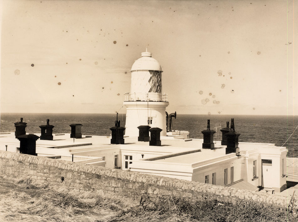 Description: In 1891 Trinity House decided to build a lighthouse and fog signal at Pendeen. It was designed by their own engineer Sir Thomas Matthews. The tower is 55’ or 17 metres high; the buildings were constructed by Arthur Carkeek of Redruth. The five wick Argand oil lamp was supplied by Messrs Chance of Birmingham. The light shone for the first time on 26 September 1900. It was replaced by an electric lamp in 1926 and automated in 1995. The light is 194’ above water level and comprises a white group flashing four times every 15 seconds. Its range is 16 nautical miles. The fog signal, based in a separate building, sounds every 15 seconds.