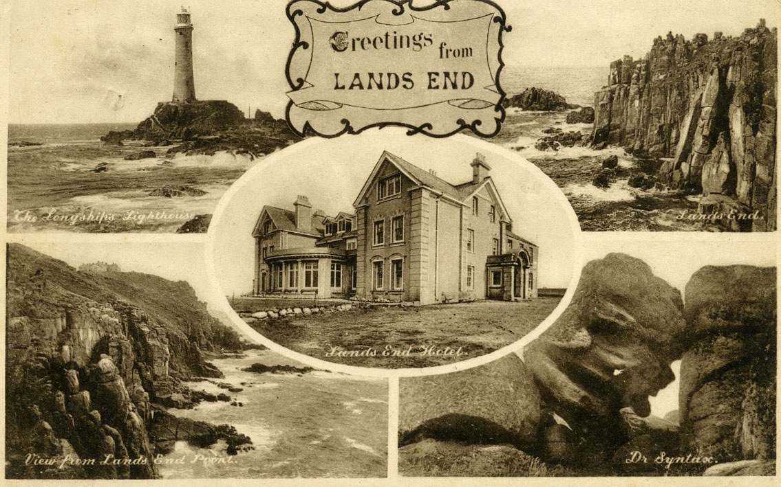 Description: Multiview card, Land's End Hotel, Longships Lighthouse, Lands End, View from Lands End Point, Dr Syntax