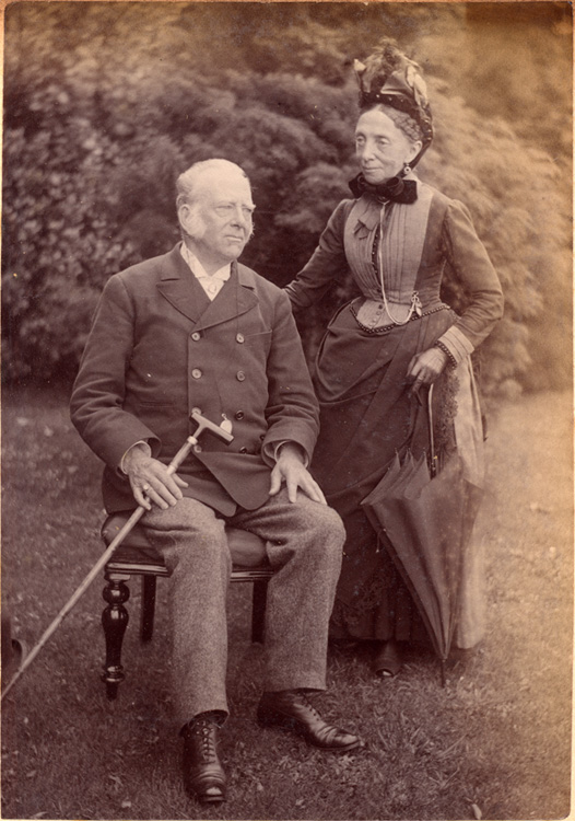 Description: A photograph of Thomas Bronte Branwell and Charlotte Branwell, brother and sister, as well as distant cousins of JR Branwell's branch of the Branwell family, who lived at Penlee House. They stand within the grounds of Penlee House.