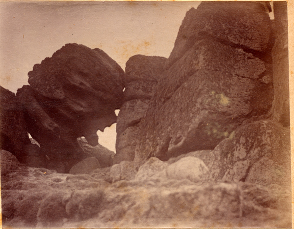 Description: A photograph of the 'Doctor Syntax', a formation of rocks at Lands End. Dr Syntax was a henpecked, simple-minded clergyman created by William Combe to accompany a series of coloured illustrations by Thomas Rowlandson. His adventures are told in eight syllabled verse in The Three Tours of Dr Syntax published in 1812, 1820 and 1821.