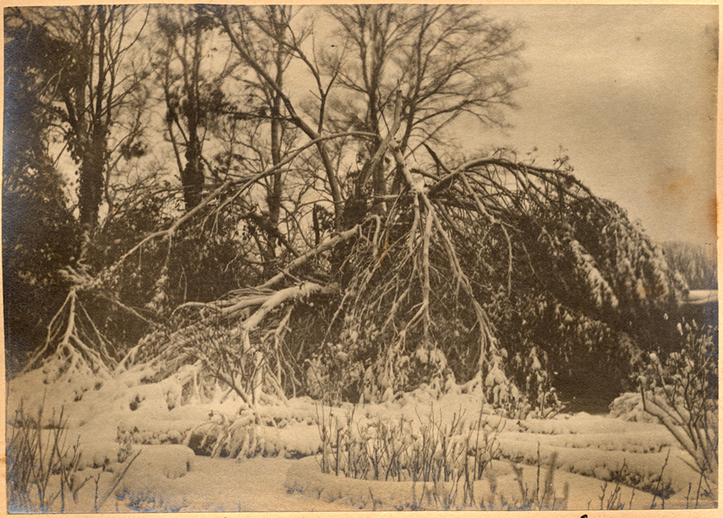 Description: A photograph of an oak that has been damaged by the snow blizzards on 9th March 1891 at Penlee House.