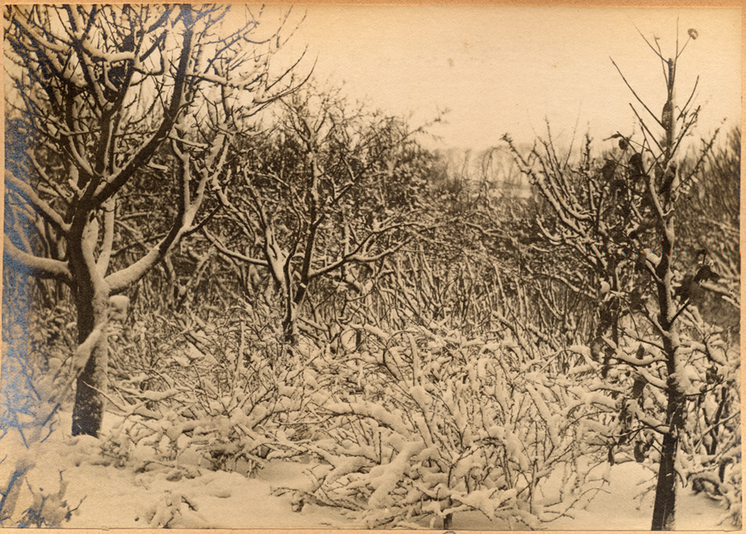 Description: The kitchen garden at Penlee House, pictured during the snow blizzards of 1890 and 1891.