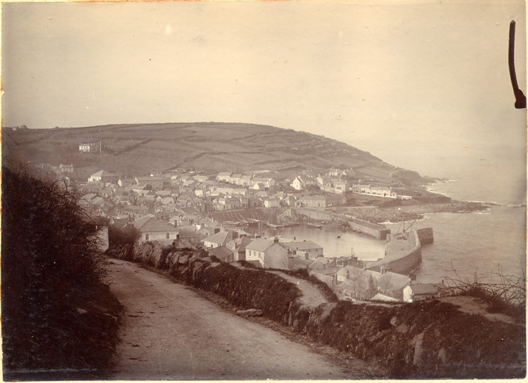 Description: Mousehole village taken from Raginnis Hill. The harbour and houses can be seen clearly.