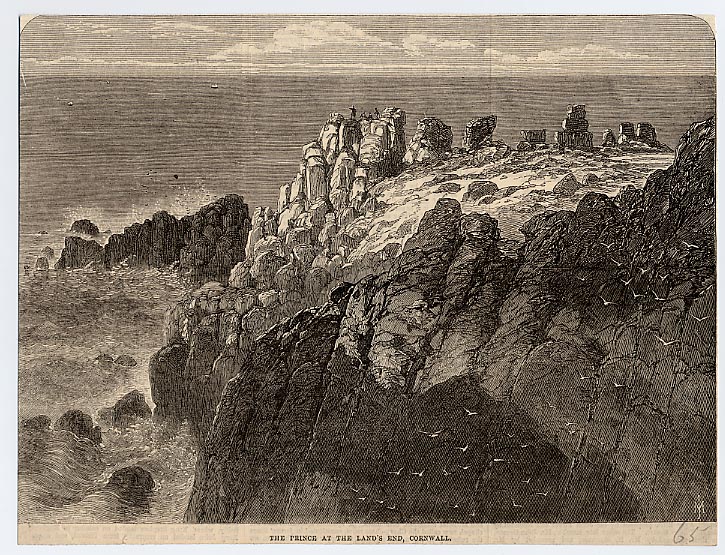 Description: The Royal Prince, perhaps Albert Edward, and others standing on the cliff top at Land's End.