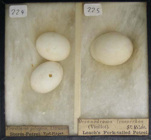 Description: Leach's Petrel egg collected on St Kilda, Scotland. Part of a larger group collected by Major Lyster.