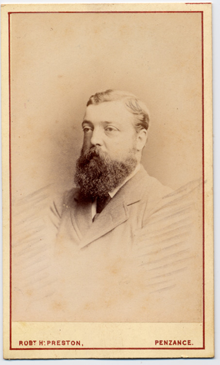 Description: A carte de visite of an unknown man, perhaps a friend of the Branwell family, who lived at Penlee House. Below left is printed 'Robt. H. Preston' and to the bottom right 'Penzance'. On the reverse the Preston emblem is printed - 'ROBT. H. PRESTON. Photographer TO THE PRINCE AND PRINCESS OF WALES. PENZANCE'
