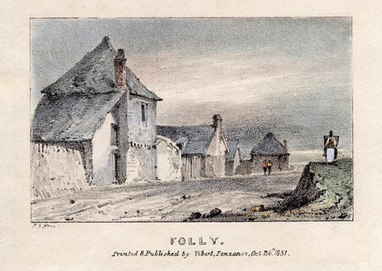 Description: This is a view of where Cornwall Terrace meets with the sea front, with Folly House on the left. Two people are walking in the distance. John Folly owned a property on this site in 1437. According to the 1841 census there was a yard and stable to its left and it was owned by James Horwood. Subsequently it was owned by Richard Chirgwin, farmer whose lessee was the Reverend William Pearce.