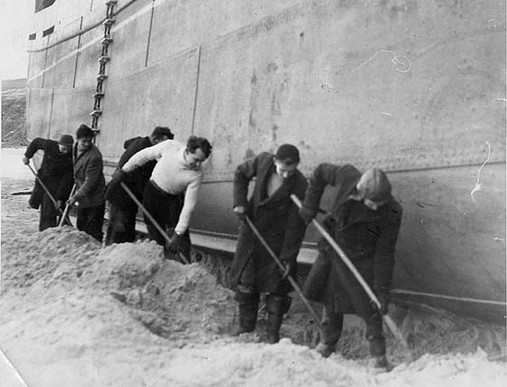 Description: The sand is being dug away in order to refloat the ship "Serenity", aground on the sands off Lelant, on the next tide. She was built by George Brown of Greenock in 1941 and sold to Greece in 1967. She was 557 gross tons, 168.7' x 27.7' x 9.6' with a Newbury 5 cylinder diesel engine. Everard's coaster 'Serenity', laden with cement, ran aground on Hayle Bar in January 1957, and she was subsequently floated off safely.