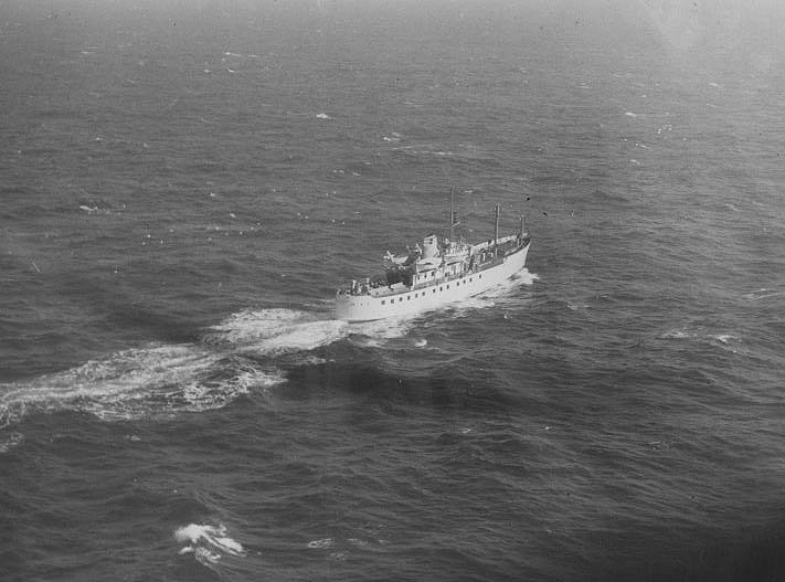Item: Aerial photo of the Scillonian II at sea on her maiden voyage from Penzance to St Mary's on 17 November 1955
