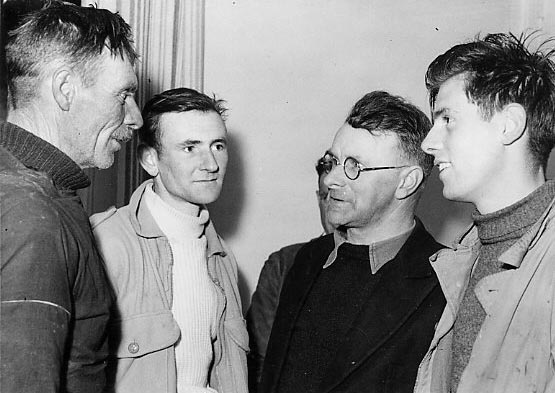 Description: Shipwrecked crew of the Empire Flamingo with the crew of the Sennen Cove Lifeboat