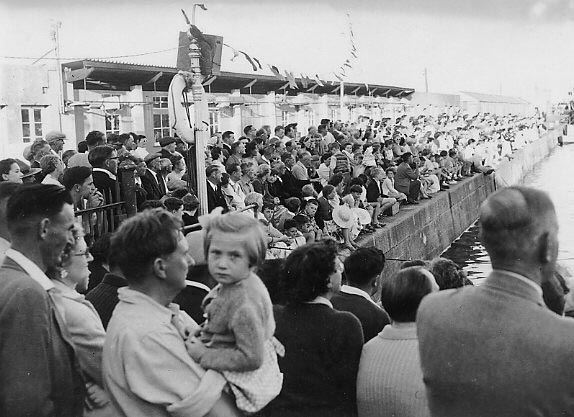 Item: A large crowd at Newlyn harbour watching an unknown event