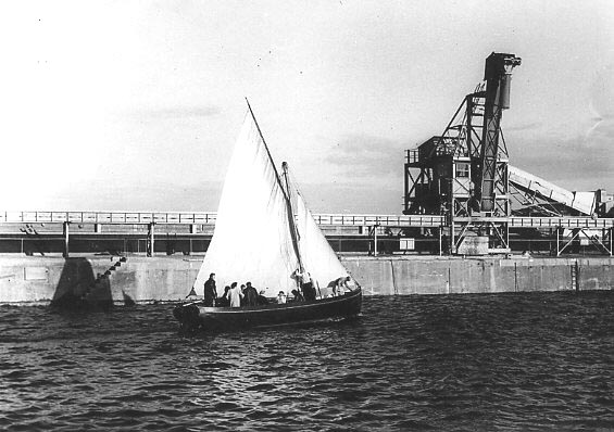 Description: Sailing cutter in Newlyn harbour, alongside the south pier