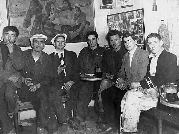 Description: Shipwrecked steamboat crew, possibly in the 'Swordfish' pub Newlyn