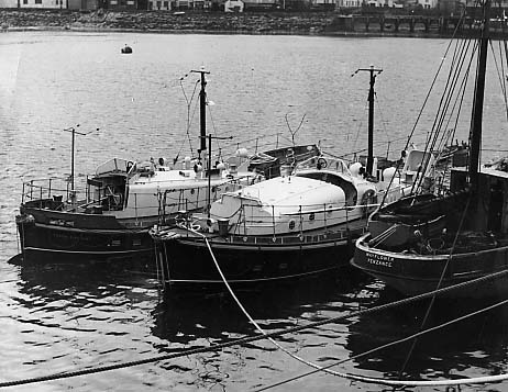Item: Two relief lifeboats and the fishing boat 'Mayflower' alongside the North pier Newlyn harbour