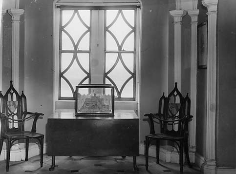 Description: The window in the Blue Room on St Michael's Mount, designed in Wedgwood Blue for Queen Victoria's visit