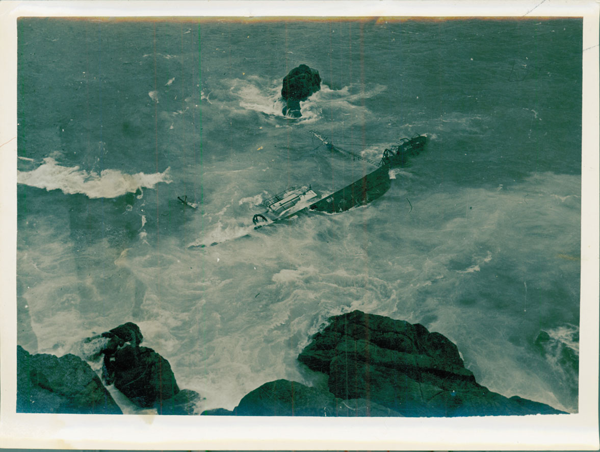 Item: The wreck of the Vert Prarial of Dieppe at Wireless Point, Porthcurno, March 1956